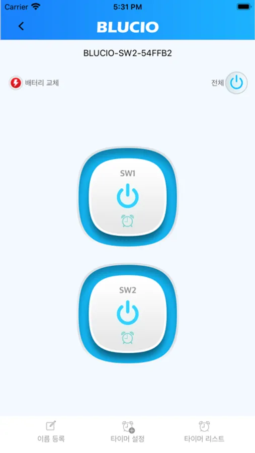 2). '부르시오 스마트스위치'는 안전성이 확보된 AA건전지로 구동하며, 배터리 사용시간을 최대화하기 위하여 전력소모가 적은BLE(Bluetooth Low Energy)회로로 구성된 기술력의 제품입니다.