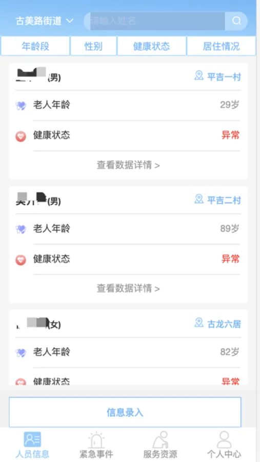 社区人员在线查看老人信息,为老人进行个性化定制方案,查询老人相关信息及健康信息,支持政策查询,及告警信息查看及处理