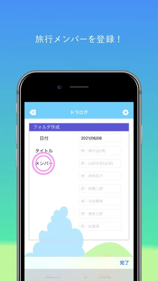 旅行のタイトルとメンバーの登録を行いフォルダの作成を行います。