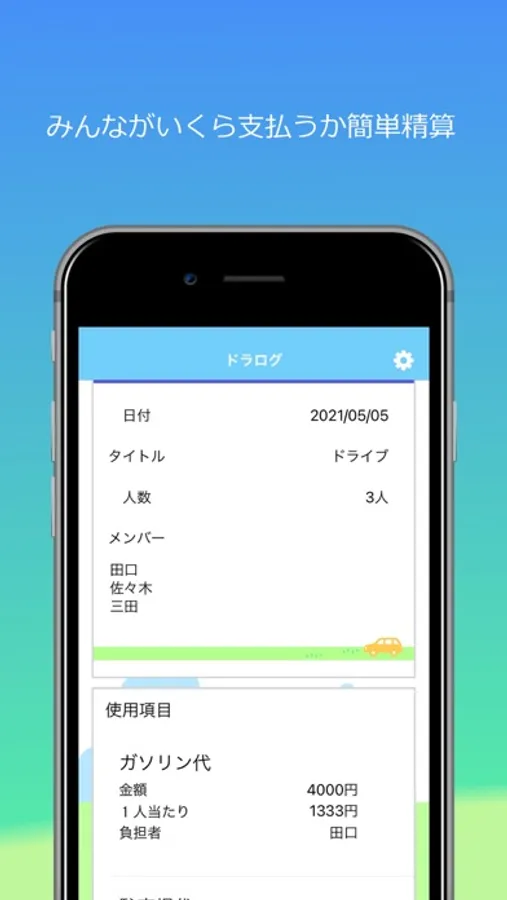 金額の入力を行うごとに常に最新の合計金額や割り勘した1人当たりの金額を確認することができます。
