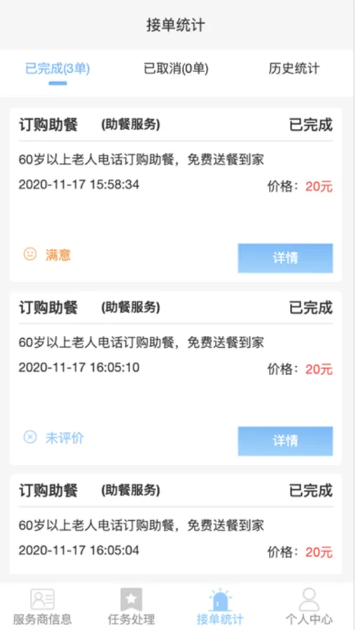 爱心联盟服务商可以通过此app 在线进行接单,处理并服务老人