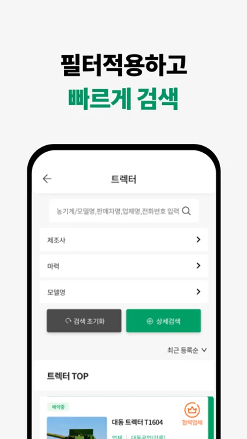 농기계 제조/판매 업체의 신품 농기계를 홍보 할 수 있도록 메뉴를 마련했습니다.