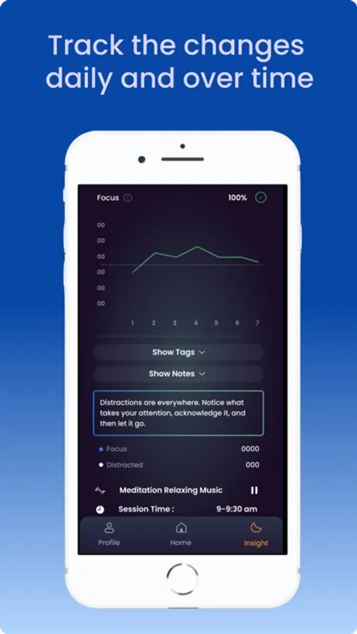 Under the insights screen you can monitor your stress, focus, attention, resilience and mood levels on a day to day basis to train your brain and improve your performance and mental wellbeing.