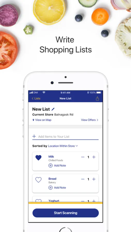 Be guided around the store with product locations automatically appearing in your shopping list