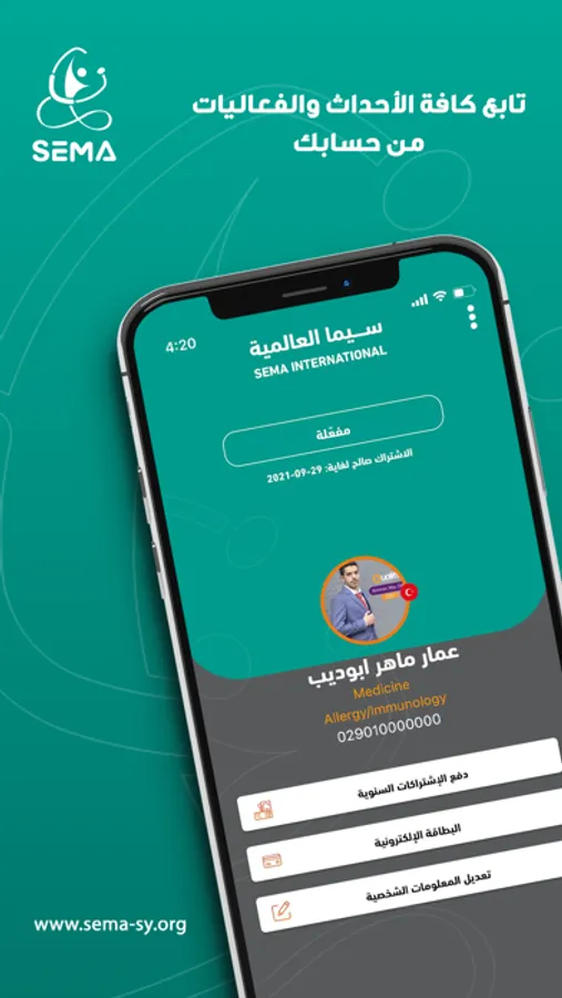 يتيح النظام للأعضاء من خلاله دفع الاشتراكات السنوية ومعرفة حالة العضوية لديهم إن كانت فعالة أم مجمدة وكذلك طباعة بطاقة العضوية الخاصة بهم بالإضافة للاطلاع على آخر أخبار سيما وعلى أخبار العضوية