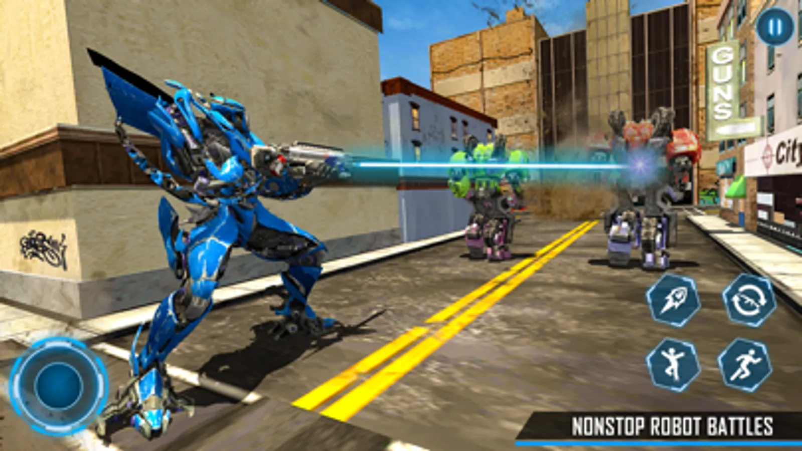 Robots have attacked over a city, you are also the robot of shark. Save the innocent people by killing all of them. You have power to destroy other robots in robot fight as a shark to robot. You can transform and kill with tactics throughout the game. Don’t be the last to shoot, otherwise you are the victim of your robot enemies.