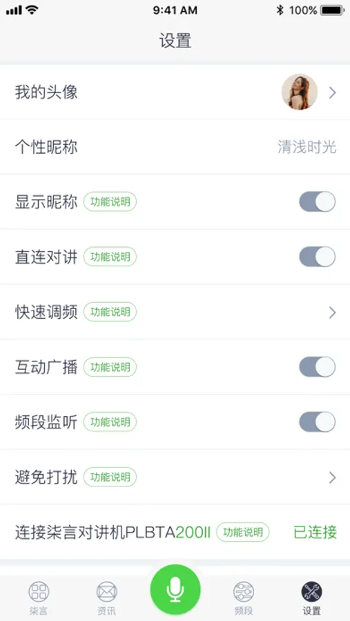 柒言是一款具有手机熄(锁)屏对讲和调频的实时语音对讲软件。设有公共服务频段,支持用户自建频段及分组子频段、支持一对一直连对讲、语音记录及回放。并支持自动连接柒言系列蓝牙智能硬件设备,增强更多用户扩展功能。操作简单适合团体、企业、公司、协会俱乐部、抗疫值守、保安、家庭等各种场景使用。