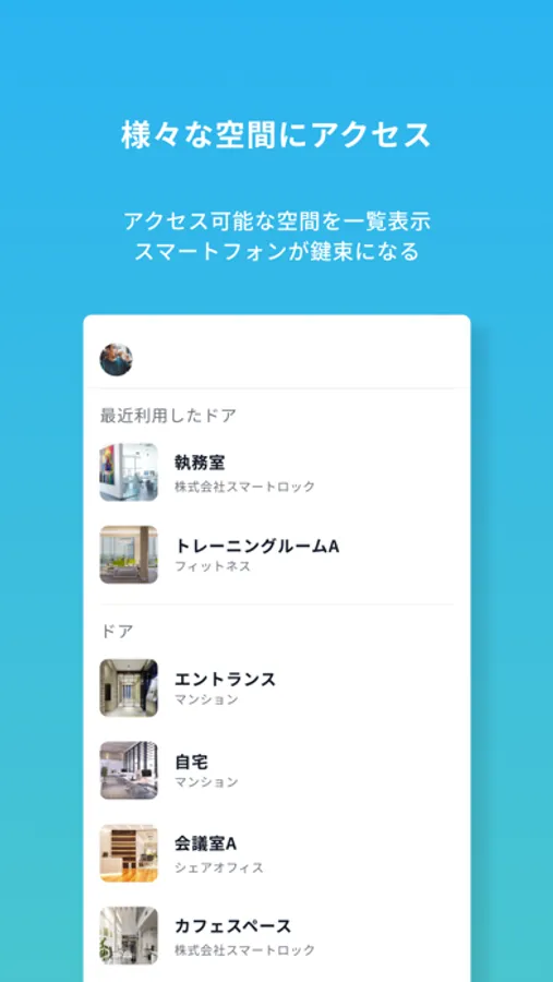 Akerun Appを使うことで、自宅やオフィス、フィットネスジムやシェアスペース、学校などの様々な空間にアクセスすることができます。