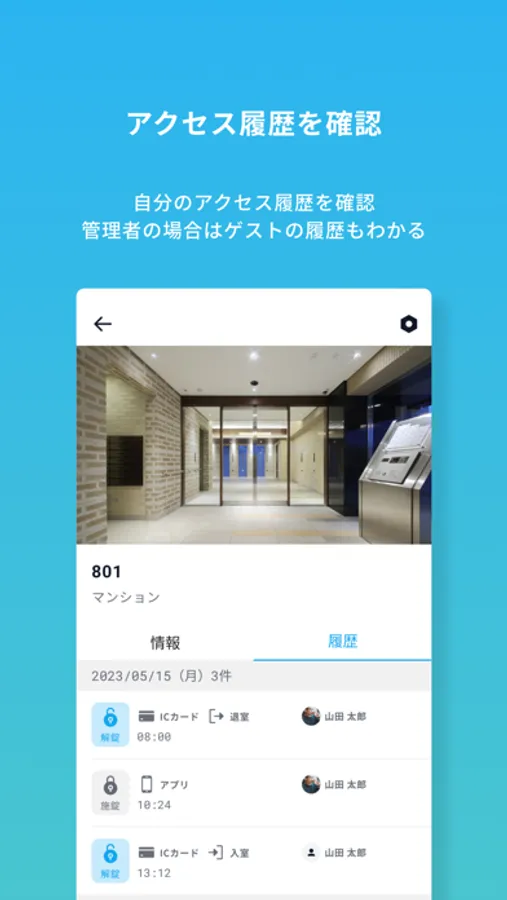 「いつ」「誰が」「どこに」出入りしたのかを確認することができます。