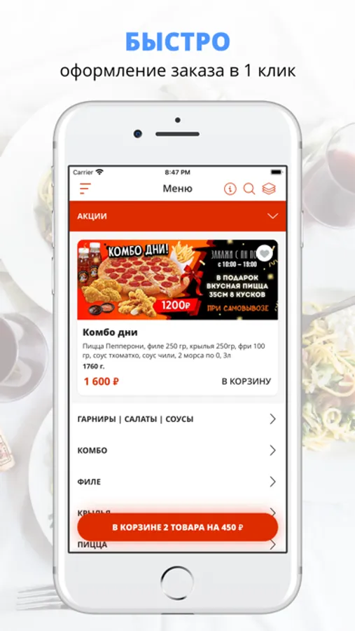 посмотреть меню и совершить онлайн-заказ,