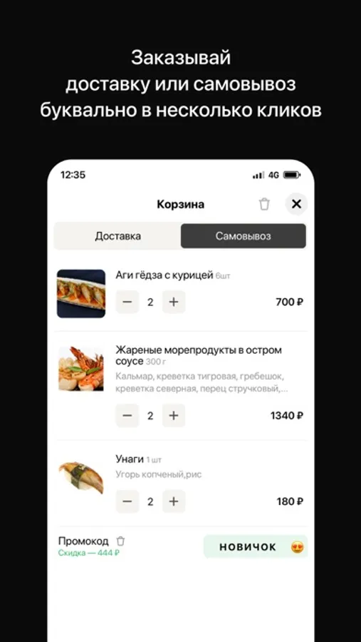 — Быстрый заказ с мгновенным подтверждением через приложение.