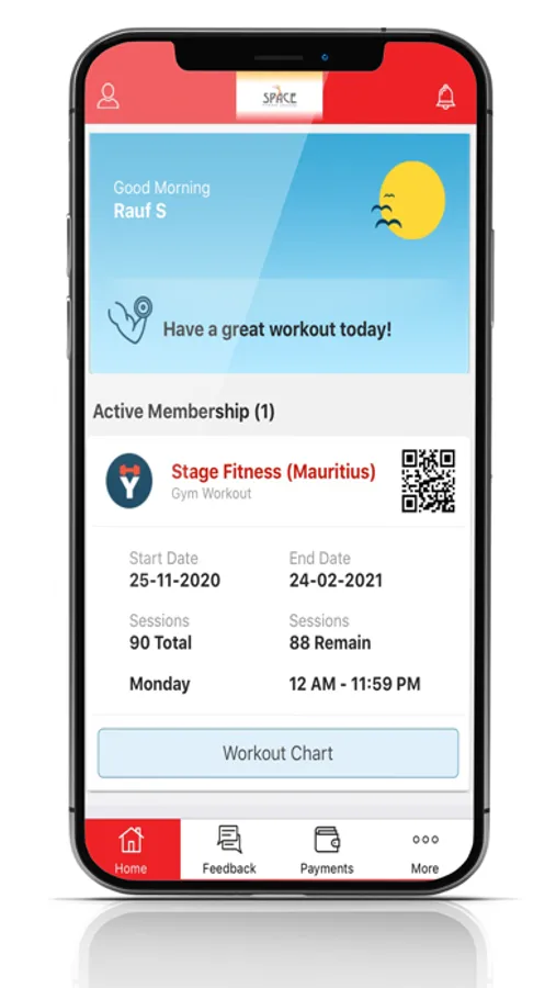 The app is a great way to schedule group activities and personal training sessions. Now don't miss your favourite group classes and stay updated. Space Fitness Member app also helps you keep a track of your daily attendance. The app makes this activity smooth as silk. You can easily track your record, even the irregular ones and know in advance the expiry date of any member and send renewal messages accordingly.