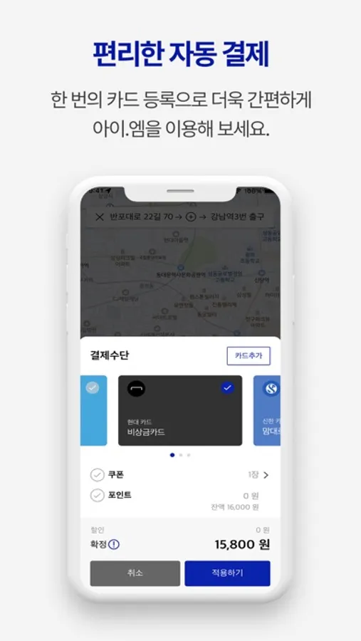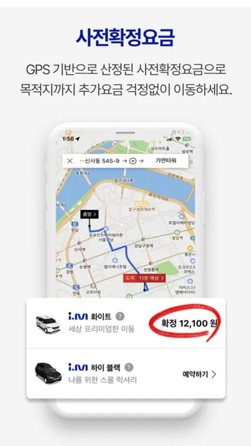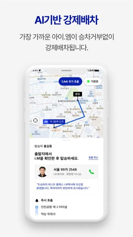 1) 호출 즉시 가장 가까운 아이엠이 승차 거부 없이 즉시 배차됩니다.