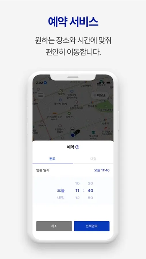 1) 구간 및 거리 제한 없이 내가 필요할 때 내가 원하는 곳으로, 편도 예약 서비스