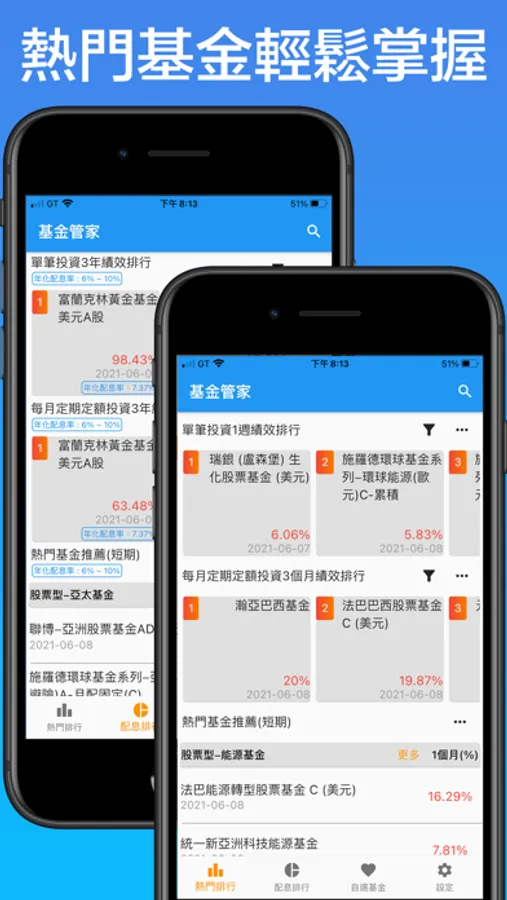 追蹤台灣核准境內外基金最新淨值和熱門排行資訊, 並可簡單管理投資部位以了解最新報酬率/損益
