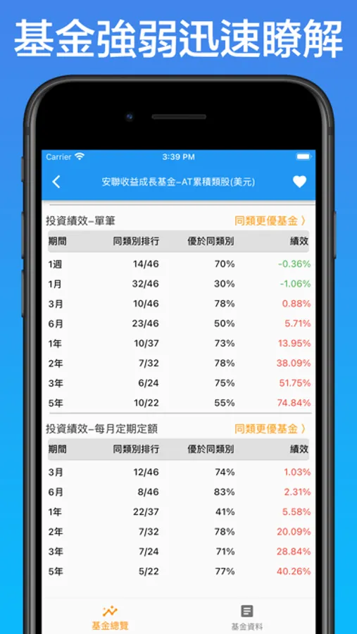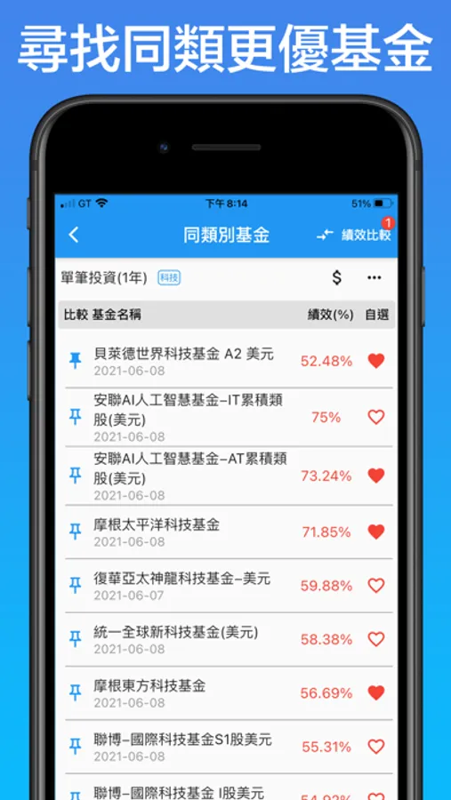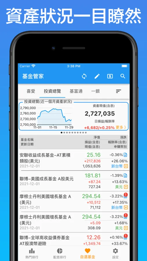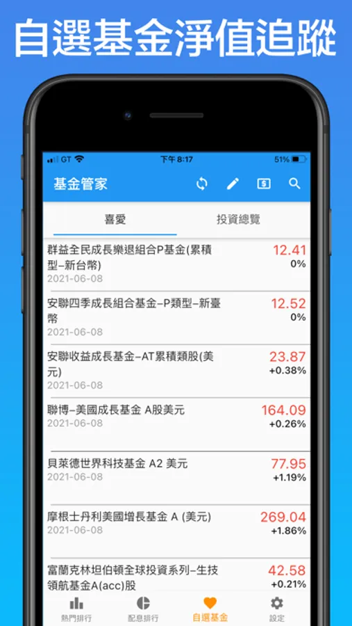 3.可建立自選基金清單,方便隨時查詢最新淨值