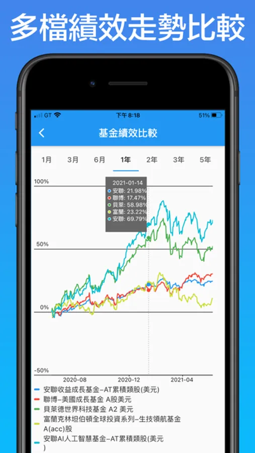 8.針對查詢基金可以方便了解單筆投資/定期定額投資績效