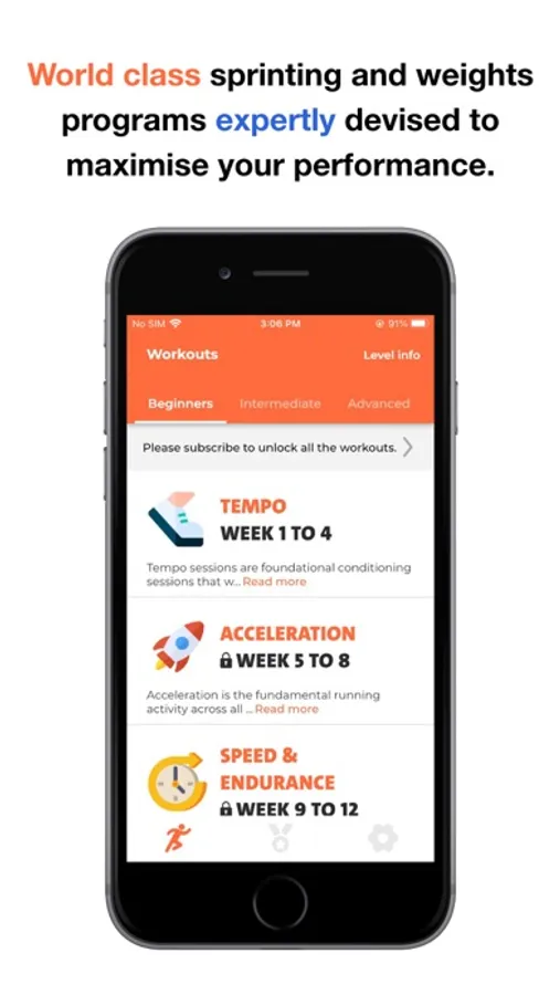 Designed by sport scientists and sprint coaches SprintHit will guide you through Warm Up, Drills and