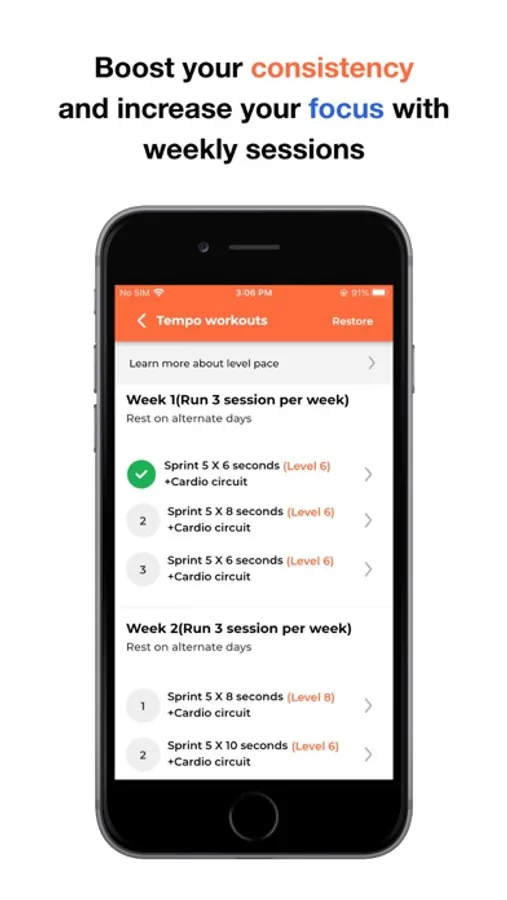 - Listen to your coach through your headphones that tells you when to sprint and stop and recover.