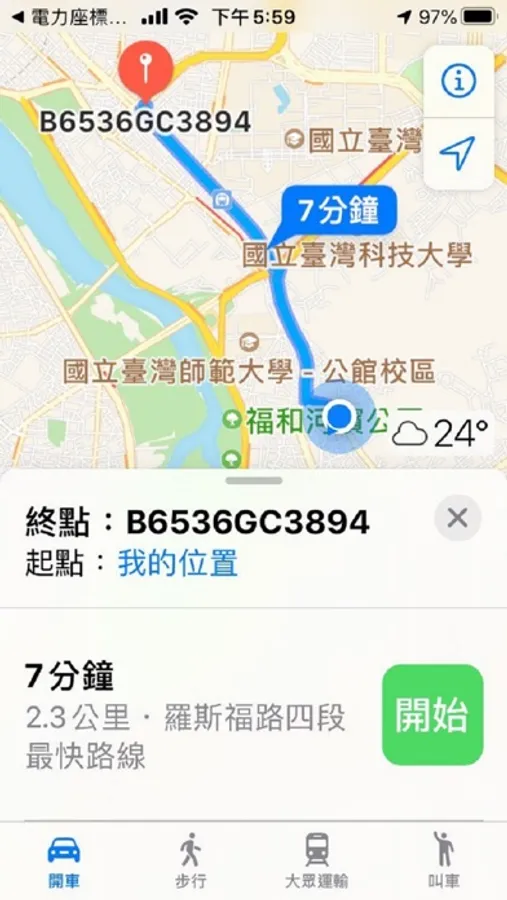 由智慧手機讀取目前經緯度,導航到【電力座標】位置。