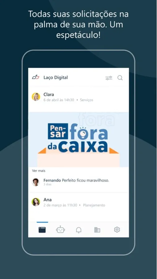 Este aplicativo facilita comunicação entre todas as áreas da Laço Digital. Você poderá fazer por aqui as suas solicitações, receber suas atualizações e ser informado do que acontece de mais importante.