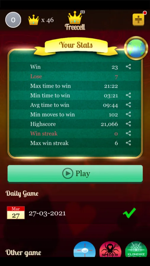 -Daily game : Play daily game and earn extra crowns!