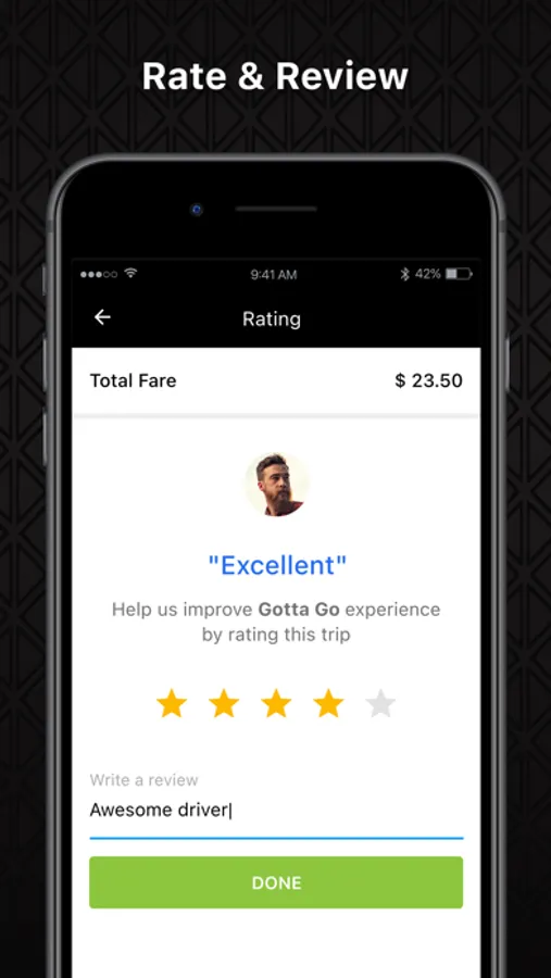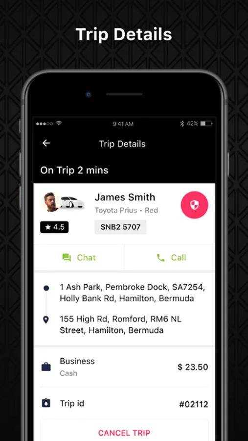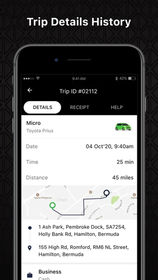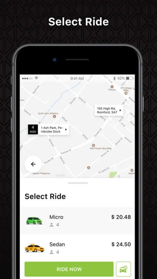 Book a ride/service on demand or prearrange for later. Open app and enter your destination. Otherwise type in pickup/drop off address or drag and drop location on a map. Save favorite places. Fare/Time estimate before booking. Select vehicle. Select payment method. Trip/receipt history. Track driver in real time. Booking confirmation. Rate driver. Tip driver. Comments. Share.