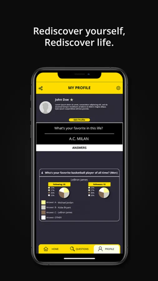 First of all, the user who downloads the application for free will be asked the “main question” "What or which is your favorite/most valuable/most important thing in this life?” After answering this question, the user is faced with the question “Is this your final decision?” If answered “yes”, it is locked and this answer is included in their profile never to be changed again. Users who continue to use the application for free will be able to see and follow the answers of all other users regarding the same question in the broadcast stream indefinitely. Users who continue to use the application free will not be able to see and therefore know any answers given by other paid and/or free users except for the “main question”. Users who switch to a premium membership by making the in-app purchase will be able to see all the answers to both the “main question” and all other questions by all other users in the broadcast stream.