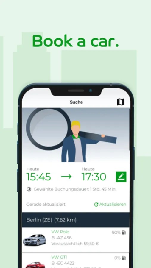 - Live-Verfügbarkeiten und Standorte von Fahrzeugen