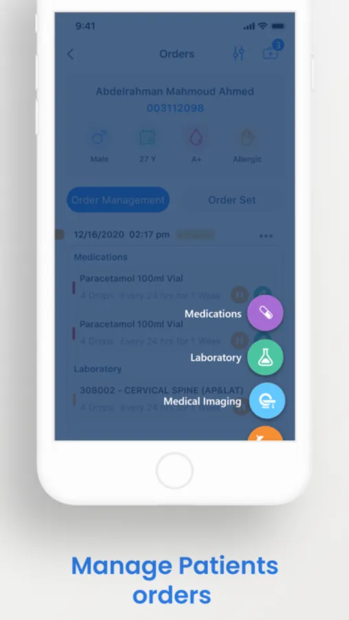 o Manage Patients orders (Medication, investigations & procedures)