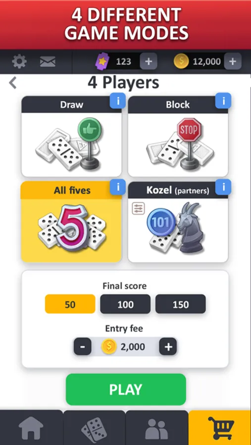 Four popular Domino games in one app. Play ALL FIVES (MUGGINS), DRAW GAME, BLOCK GAME and KOZEL dominos online with your Facebook friends or random opponents.