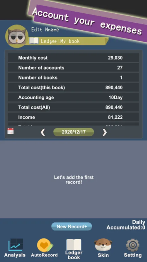 Record your expenses and income!