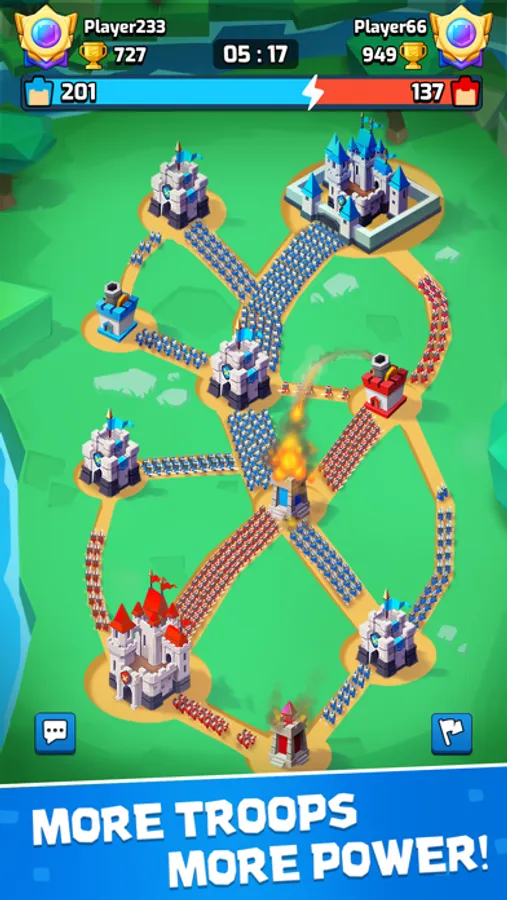 Welcome to Tower Clash! A real-time strategy game. Now start to expand your territory and compete with hundreds of thousands of online players!
