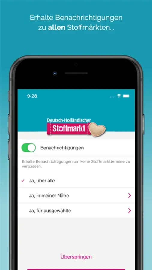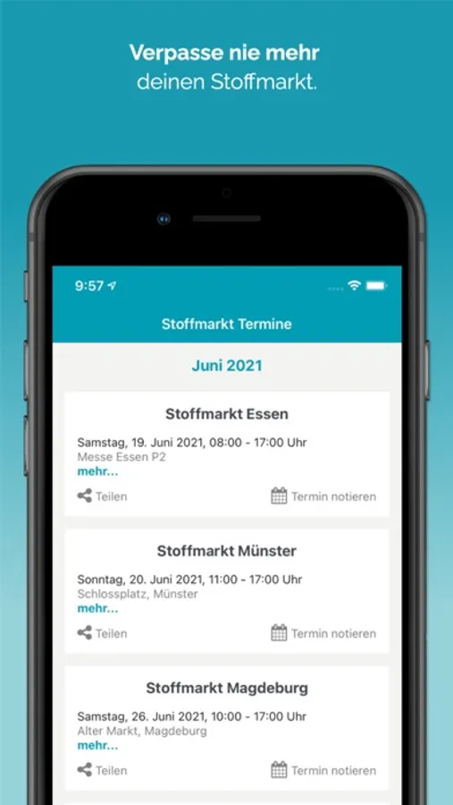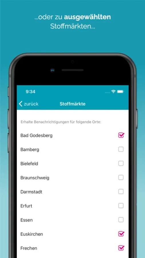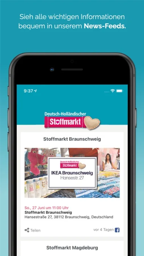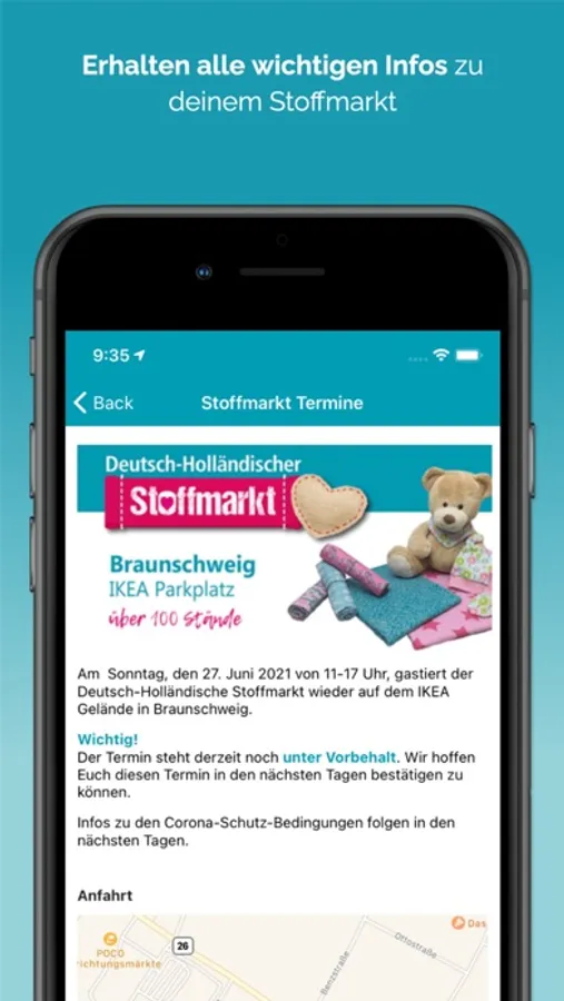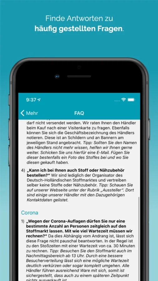 The Expo Stoffmarkt App offers the following features: