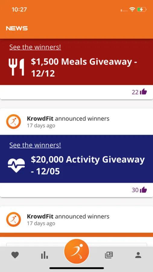 We work with your Apple Health data as well as the most popular trackers and apps. KrowdFit uses the logs from your daily activities and automatically enters you in our weekly, bi-monthly, monthly and quarterly drawings.