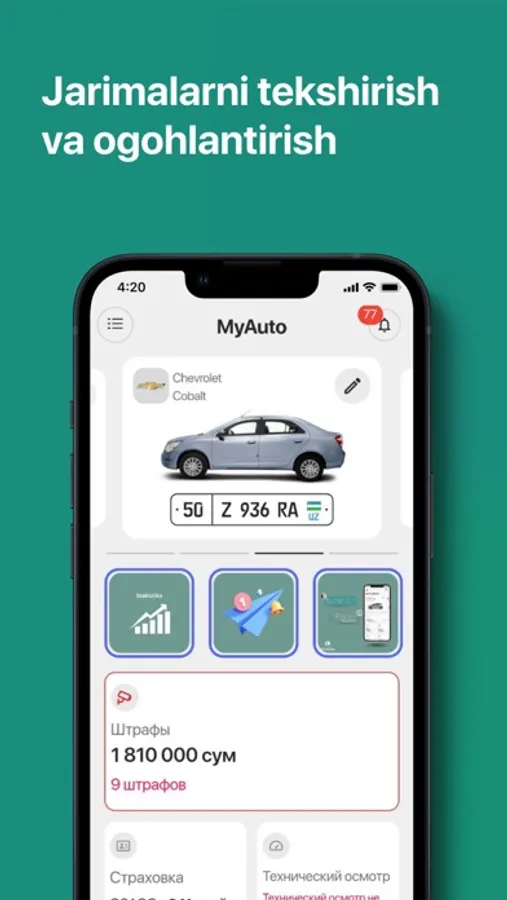 - Bir nechta transport vosita jarimasini tekshirish - taksopark va tijorat avto tashkilotlar uchun qulay