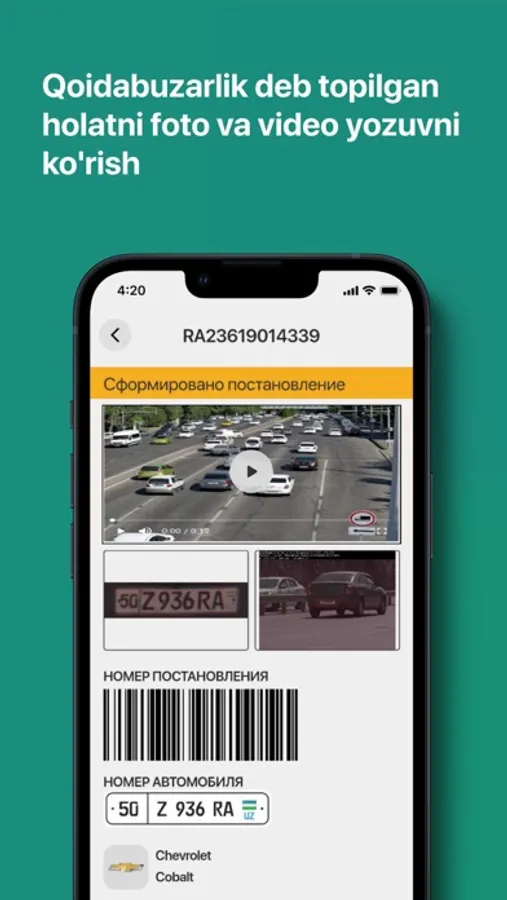 - Jarimalar foto video va joyini ko'rish (inspektor to'xtatib protokol tuzgani bundan mustasno)