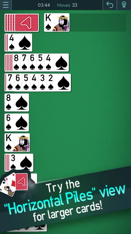 - 4 suits mode for players who want a difficult solitaire game