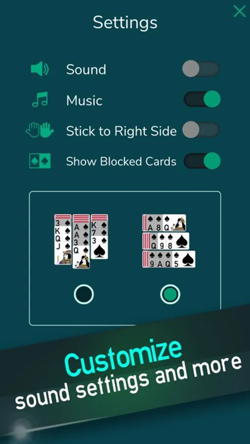 - Sound options to make your solitaire game as enjoyable as possible