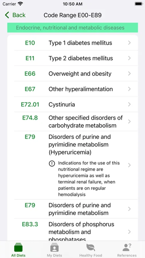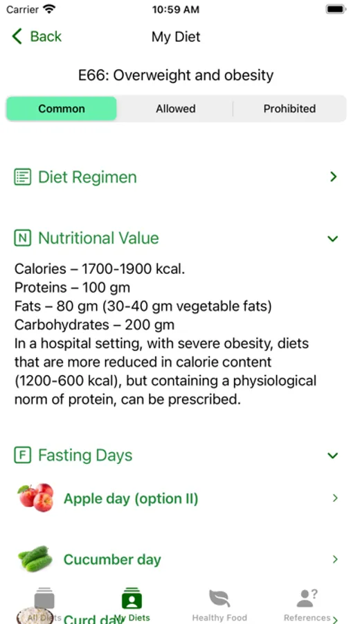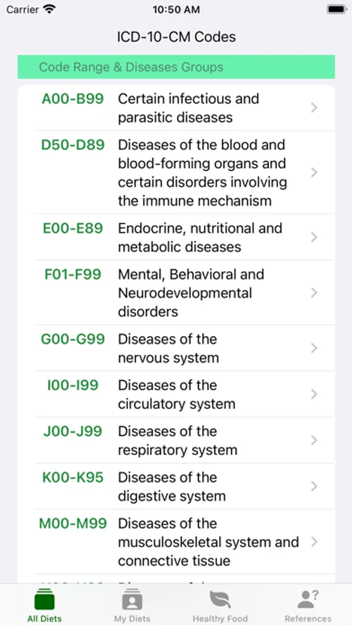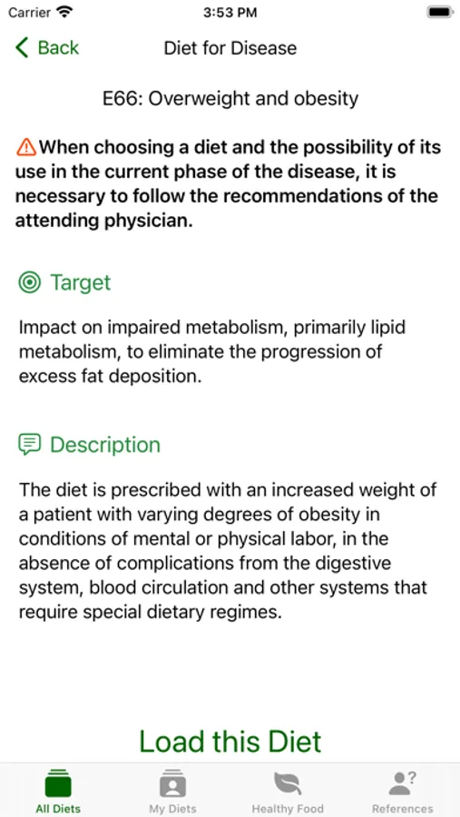 This App is a reference book to medical diets that comply with the US and International Classification of Diseases ICD-10-CM. Using the reference book, you can choose the necessary diets for various diseases and get recommendations on the choice of foods and dishes for medical nutrition.