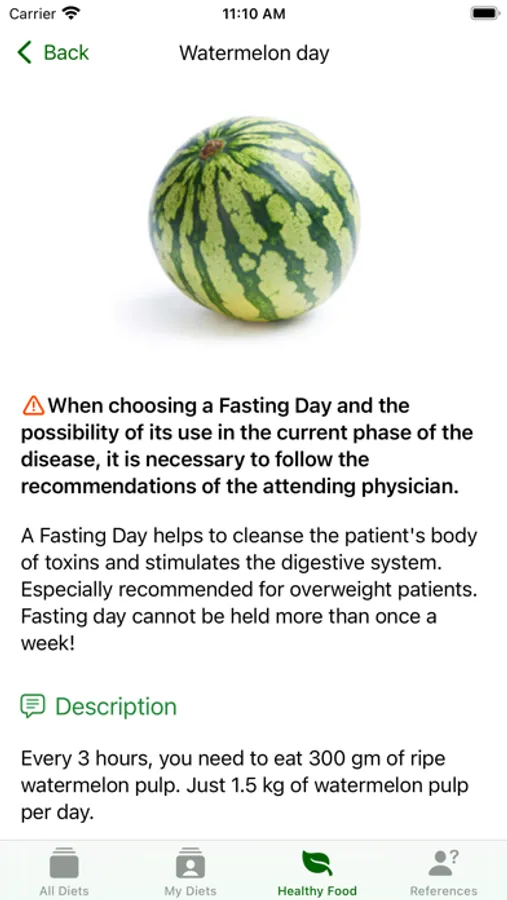 The 'Medical Diets' application is for reference only and should not be used as a guide for the treatment of diseases.