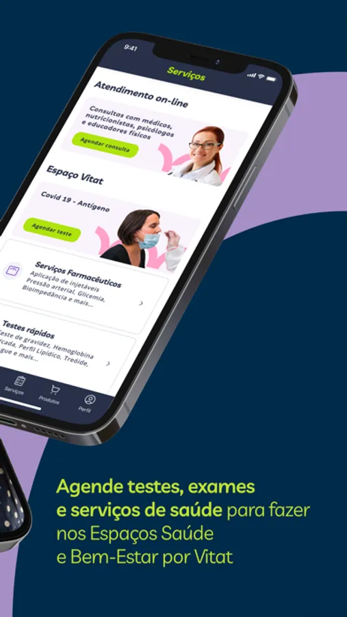 - Agendamento de serviços de saúde e compra online de produtos;