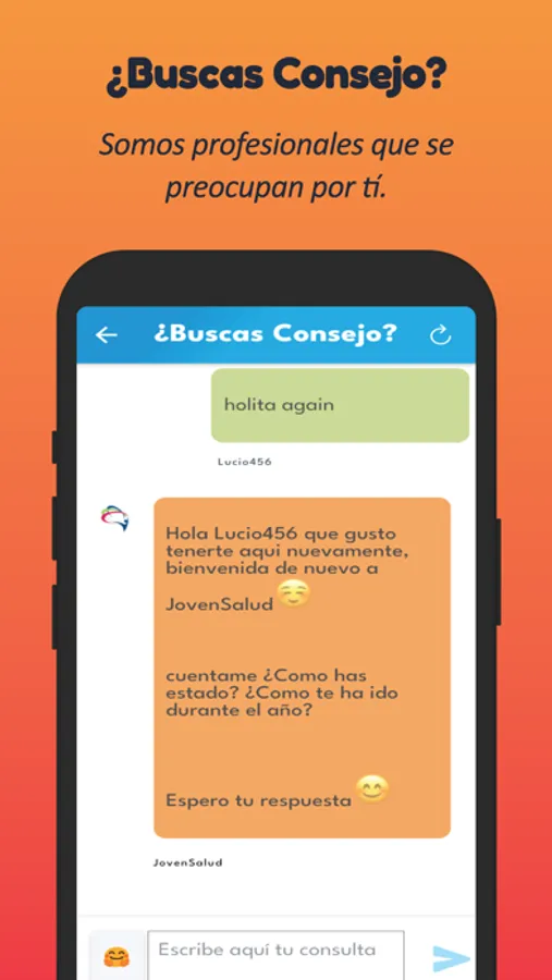 JovenSalud es una forma simple de mejorar tu vida y aprender nuevas destrezas. Consulta a nuestros profesionales sobre las dudas que tengas, o bien, revisa contenidos de tu interés. Elige la manera en la que deseas ser mejor cada día. Únete a más de 50 000 jóvenes que usan JovenSalud y cuenta con nuestro apoyo.