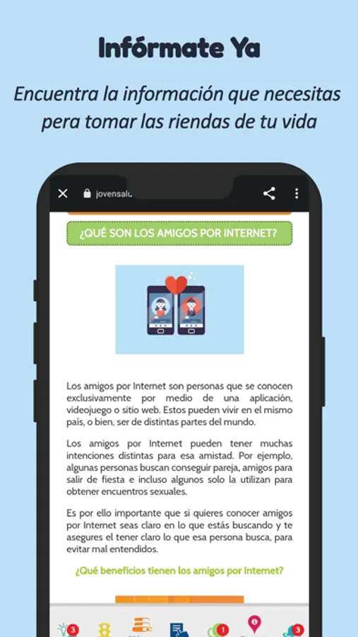 -Informarte sobre temas como: violencia, bullying, drogas, sexualidad, nutrición, relaciones familiares, entre otros. (Servicio Infórmate Ya)