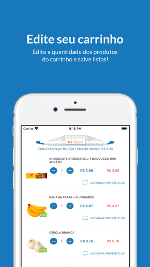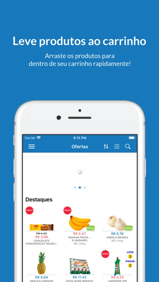 • Adicionar produtos no seu carrinho com um simples tocar e arrastar.