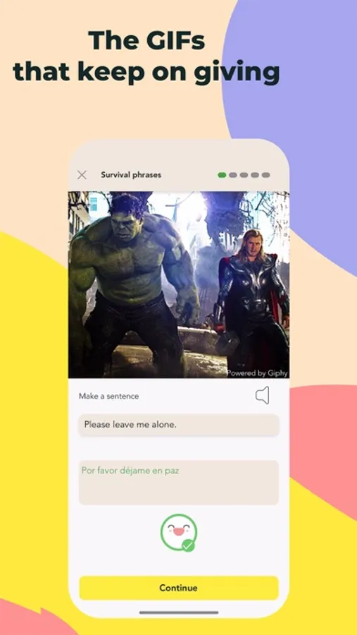 Spiel is a modern twist on language learning. As you progress from the basics all the way to advanced, entertaining gifs will accompany each phrase to reinforce vocabulary, increase your motivation, and most importantly, keep you laughing! Choose from endless topics, practice making sentences and speak directly to Spiel in any language because it understands you. Choose to follow the suggested language path or focus on the topics that interest you most. You’ll never be penalized for wrong answers, and instant feedback is always just one click away. Whether you’re traveling to a new country, looking to supplement a language class, or simply learning for fun, Spiel has something for you.