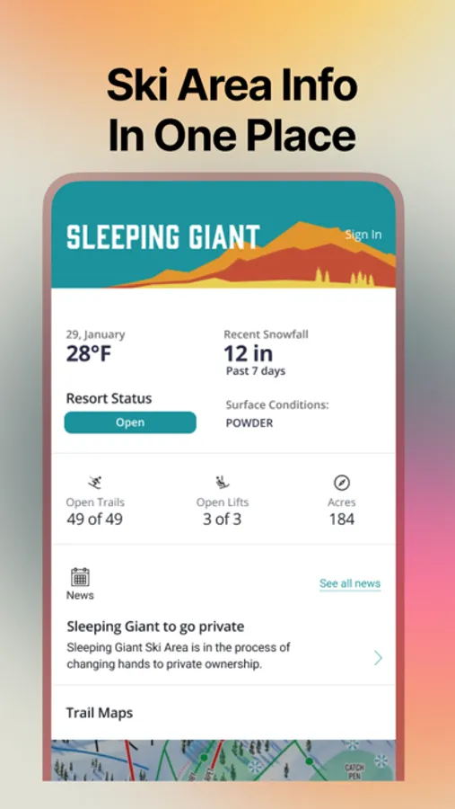 Sleeping Giant Ski Area App is your official guide to Sleeping Giant Mountain, all at your fingertips.