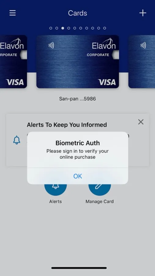 The Elavon Biometric Authenticator App is a mobile app solution offered to Elavon Financial Services commercial card customers. Cardholders can authenticate their high-risk e-commerce transactions using device biometrics, securely and conveniently, via the mobile app.