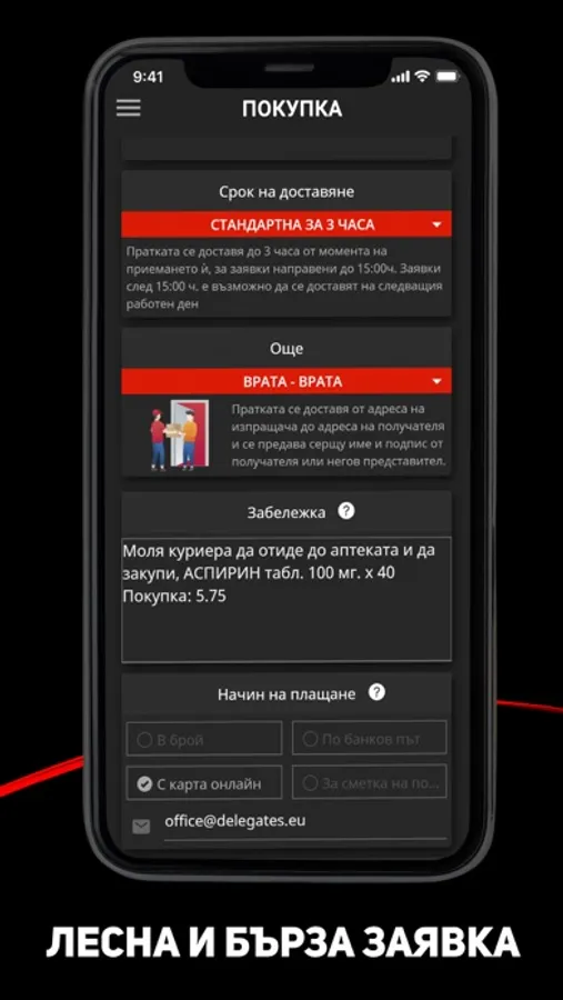 С Delegates можеш да заявиш куриер или покупка на желан продукт от всеки магазин в твоя град и той да бъде доставен в рамките на работния ден или по-бързо.