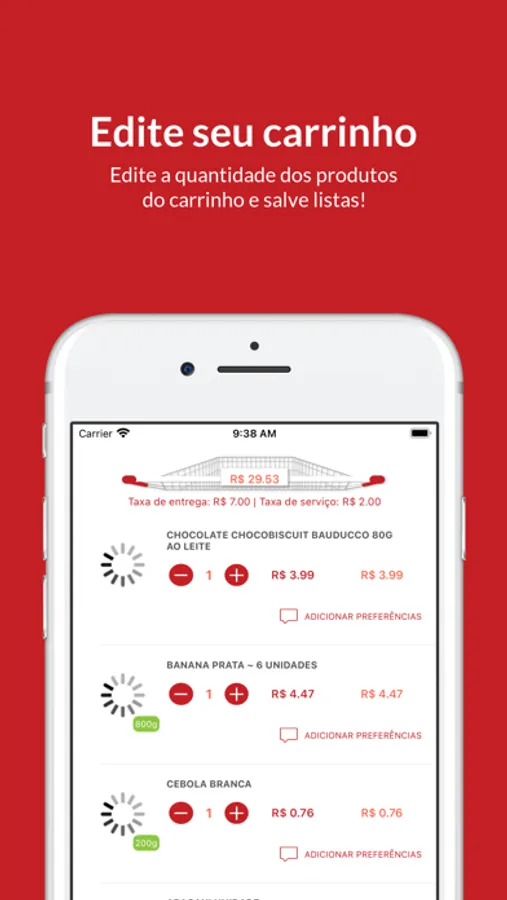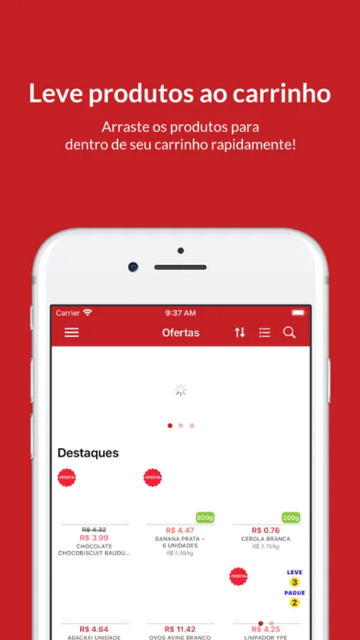 • Adicionar produtos no seu carrinho com um simples tocar e arrastar.